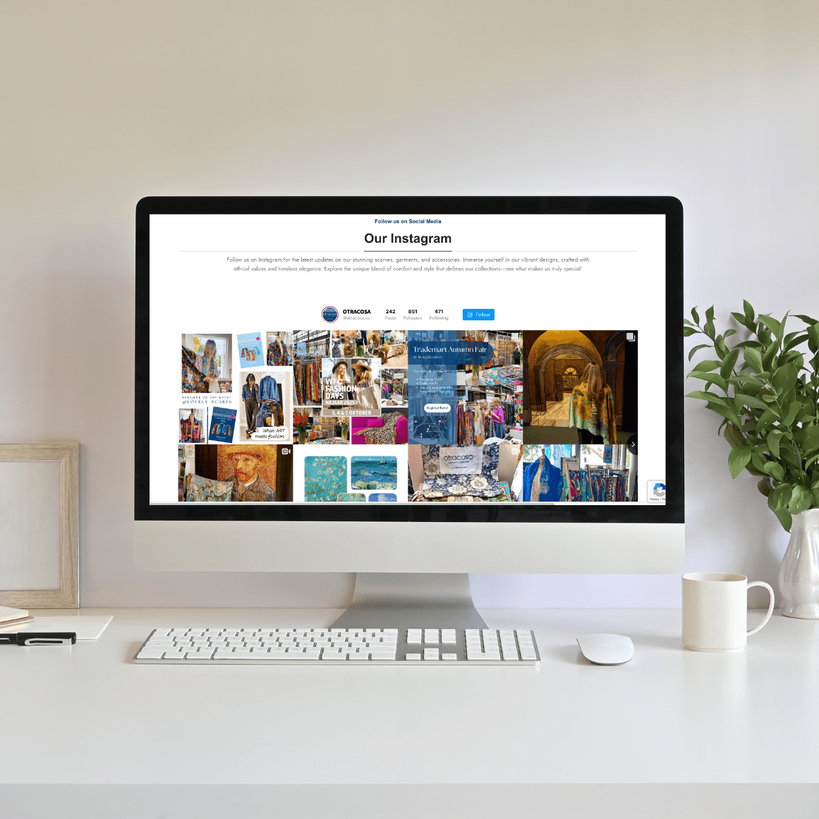 Voor de productpresentatie verwijderden we automatisch alle achtergronden via een zelfgebouwde tool. Eén van de sjaals wordt bovendien gepresenteerd op een AI-gegenereerd model, wat de webshop een unieke en luxe uitstraling geeft. Ook voegden we een Instagram-feed toe om de visuele stijl door te trekken naar social media.